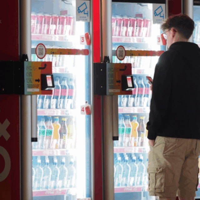These coolers let people tap a card or scan a QR code to open the door, then walk away after grabbing their drink. Cameras inside track what was taken, and inventory data gets sent back so restocking can be smarter.